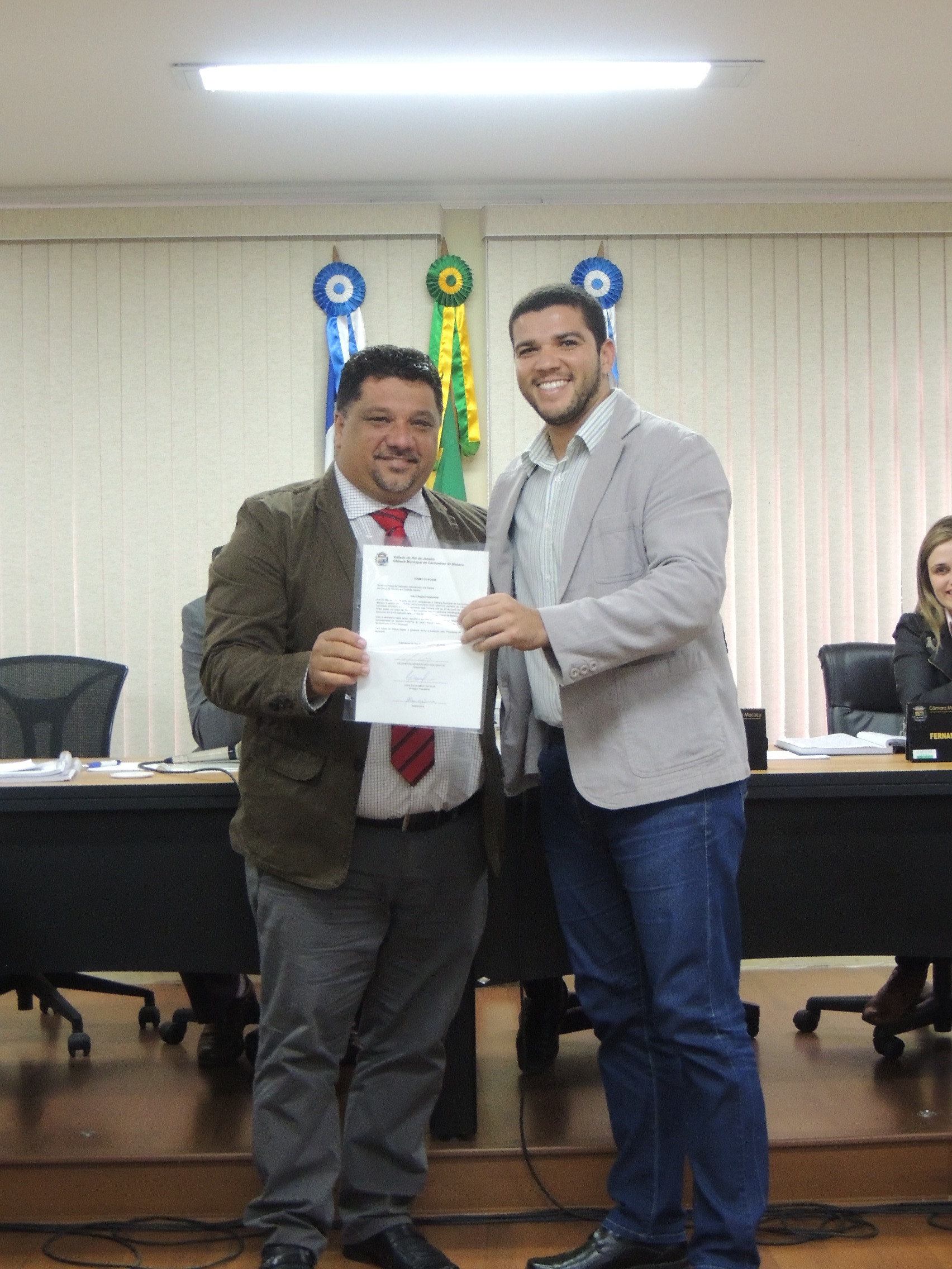 O Vereador Vandinho do Taboado fez a enterga do Termo de Posse ao servidor Dejonaton.